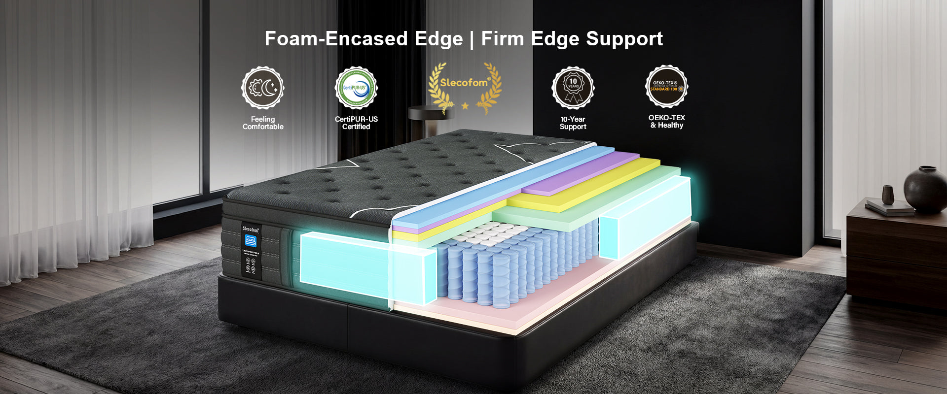 Sponge reinforced edge technology Makes you feel more at ease getting in and out of bed and sitting beside the bed.
