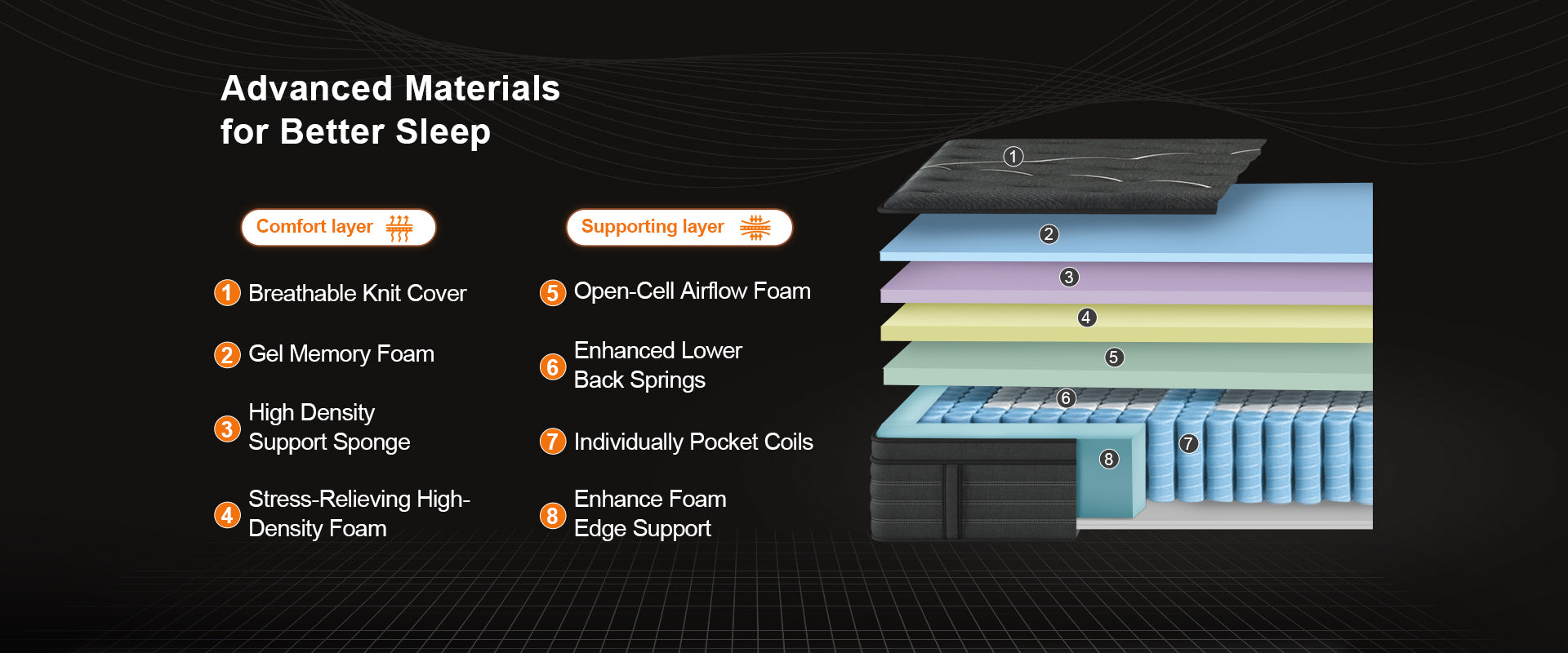 Reinforced 2.2 wire diameter high strength independent spring Silent technology, motion isolation, flipping will not wake your loved ones.